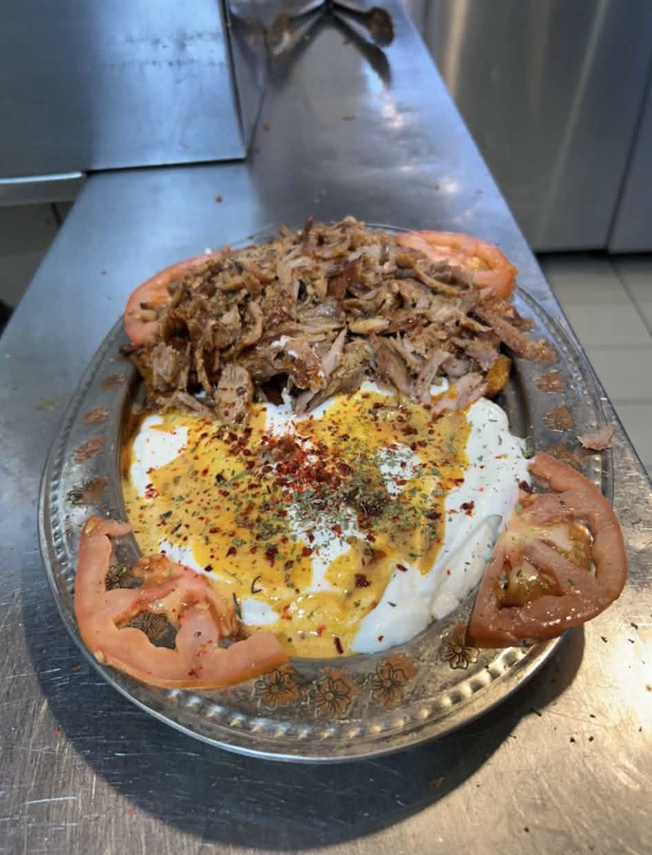 Une base onctueuse de yaourt, une viande kebab bien grillée, le tout nappé d’épices et d’huile chaude… 🥙🔥
